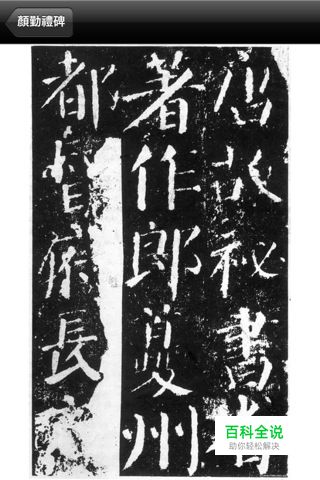 - 以手指移動速度及加速度改變筆道寬度。 - 400字出自《顏勤禮碑》。