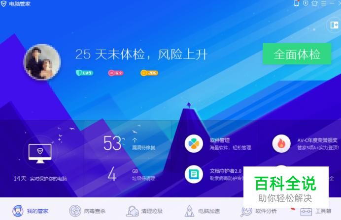 打开电脑上面的电脑管家安全软件,找到工具箱选项,开始进行操作。