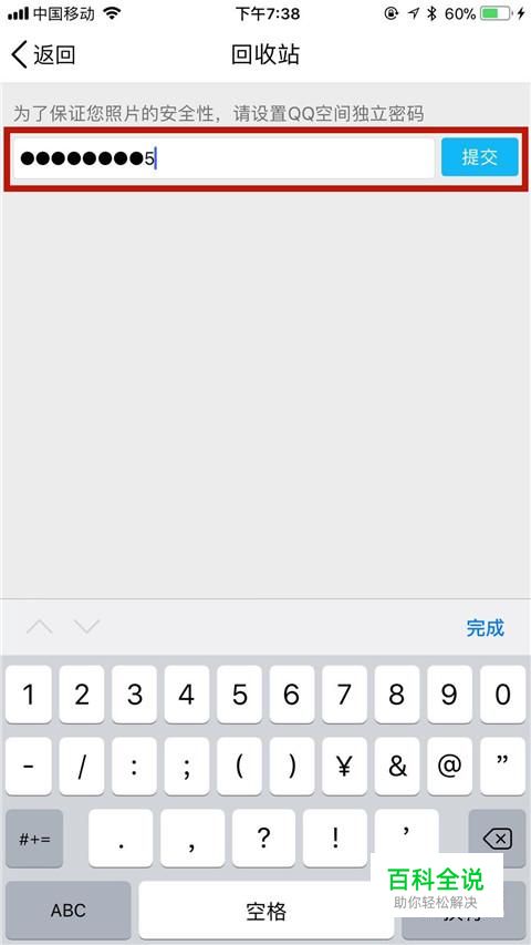 接着输入回收站所对应的独立密码并点击提交,如下图所示。