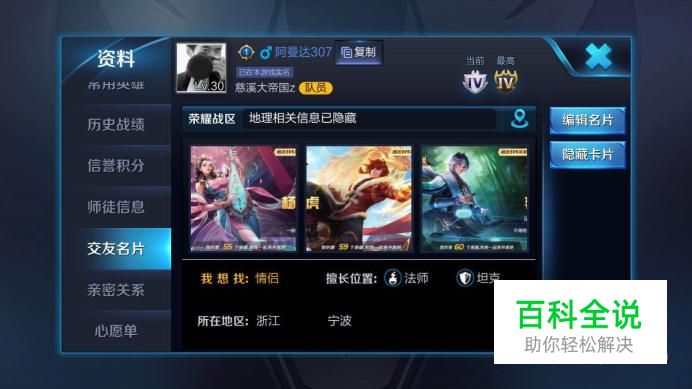 选择自己比较好的名次做展示: 在人少的战区当中,街区的竞争会更加的少,就算是非常热门的英雄,也许你玩的场次并不多,战力也么有特别高,但是也可能可以获得比较高的名次排名哦。