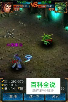 与普通怪战斗。普通怪的HP、攻击、防御都比较低,加之战斗中人物可以进行自动回血,所以在与普通怪战斗时主要装备的药品数量充足,战斗基本不会失败。