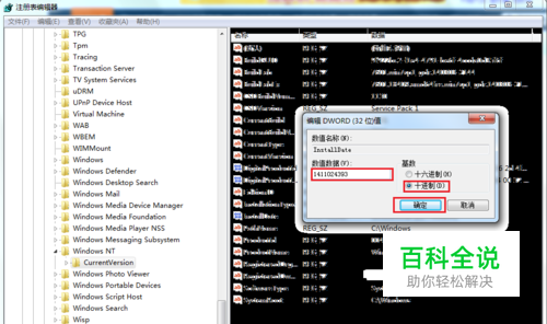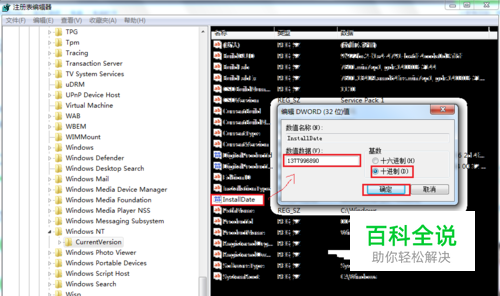 打开下面网站 http://tool.chinaz.com/Tools/unixtime.aspx 复制Unix时间戳(Unix timestamp),是十进制的数字,然后把它输入到InstallDate的十进制里面,关闭注册表即可。