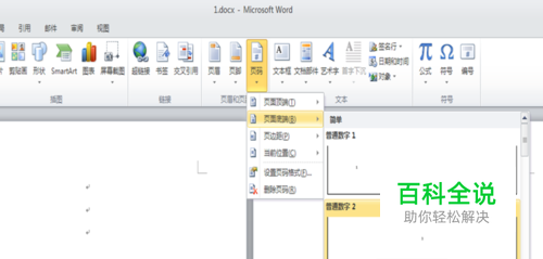 word2010,点击插入-页码-选择自己需要的页码模式。楼主这里选取底端居中为例。