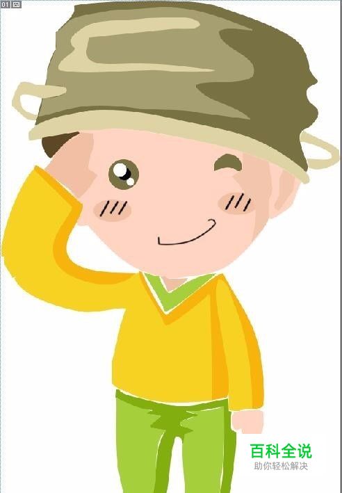 首先,我们选择钢笔工具,我们绘制出这个卡通男孩的帽子与手的姿势。