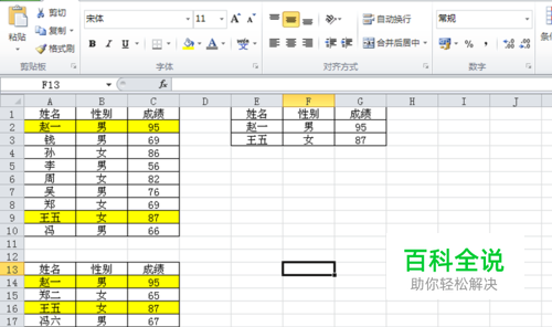 在数据区域e1:g3中就自动提取了相同的记录了,查看结果。