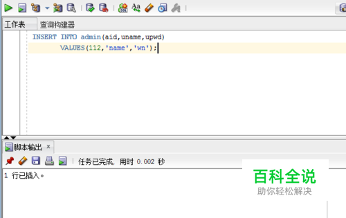 使用VALUES子句插入单行数据: 插入单行数据语法: INSERT INTO table_name[(column[,column...])] VALUES(value[,value...]); table_name为表名,column用于指定列名,value表示对应列的值。有多个列,使用逗号隔开,同时也必须有对应个数的列值,列值之间也用逗号隔开。 (卟指定列表示要插入全部列值)如下图: