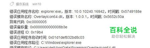 截图中提到错误模块和路径:OverlayIcon64.dll