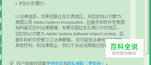 Adobe一般使用条款是什么? 之后,就是Adobe ID使用条款了,最新版日期:2014年6月18日。在我已阅读并同意使用条款和隐私策略(更新版)前面打上对号,就可以点击继续了。