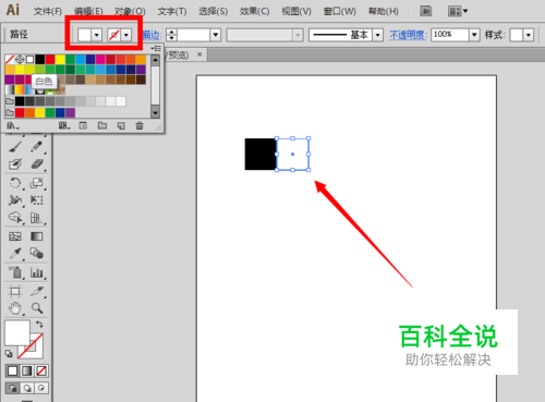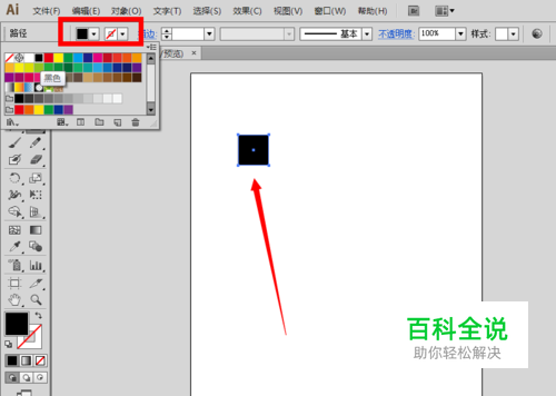 设置无描边颜色,黑色填充颜色,在空白的画布上按住shift键,使用矩形工具,绘制一个小正方形