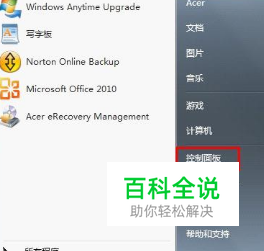 单击开始,选择控制面板;