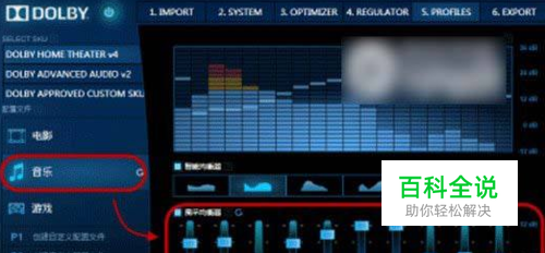 在杜比音效面板中,单击左上角的开关按钮可以开启/关闭杜比音效,也可以通过右侧的调节面板调节到自己喜欢的音效。