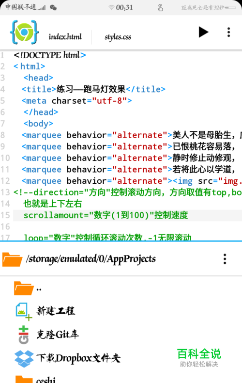 在body里边写上marquee标签,标签中间写上想要滚动的字,预览下,是不是开始滚动了?