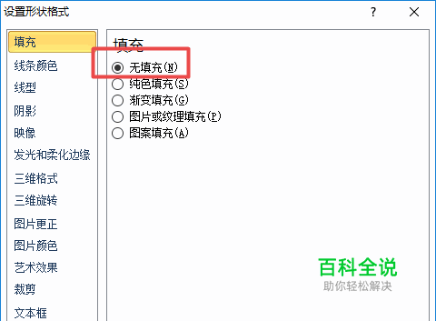 弹出的界面,我们点击无填充,然后点击关闭;