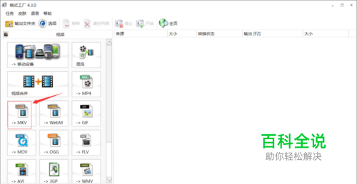 第一步:打开格式工厂,选择需要转换成的文件格式,此处以【.mkv】为例。