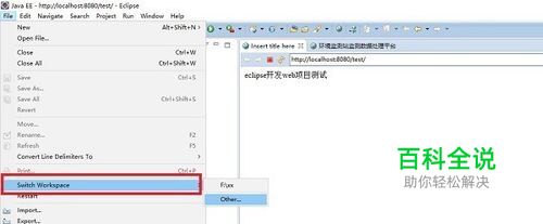 第一步在我们的电脑里面打开eclipse软件,点击"file-->switch workspace-->other",如下图所示: