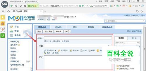 点击写信以后,进入写邮件的页面,我们需要输入收件人,主题和正文等内容。如图所示。
