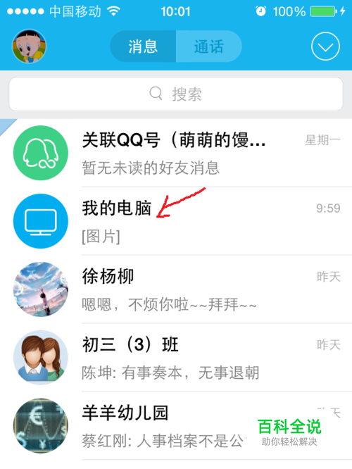 首先,利用手机QQ发送图片或文件到我的电脑,如下所示,点击 我的电脑,选择需要传送的图片: