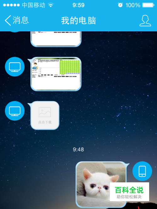 选择完毕后,点击完成,就会成功上传,此时打开PC QQ软件,会受到消息提示,打开窗口如下所示: