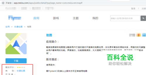 新版地图是内置百度的,旧版地图是内置高德的,两者各具优势,百度数据量大,高德专业做地图,但从安装包体积来看,配置低的手机选内置高德更好。 ps:经验里不能放链接,下载链接按照图中网址打吧。另外,旧版的魅族软件是搜索不到的,记得下载后备份。