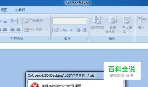 下图为打开excel2007报错的提示“向程序发送命令时出现问题”