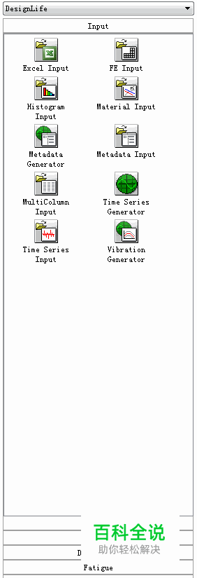 在左侧主菜单栏中我们单击DesignLifes图标,并在最右侧出现下拉列表,单击Input数据输入;