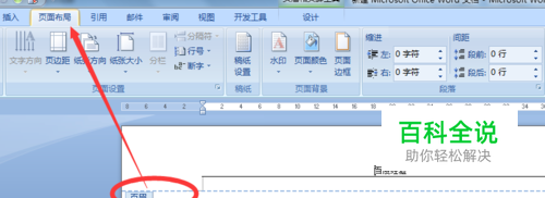 第一种方法,我们在页眉属于编辑状态下,即下面有一条虚线的情况下,选择最上面的页面布局选项卡。
