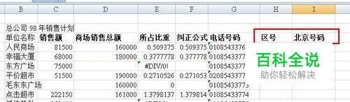 首先在数据表的后面建立两个新的列,一个为【区号】,一个为【北京号码】