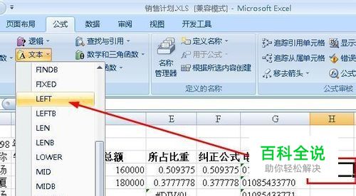 选中区号这个列的第一个单元格,也就是H4单元格,然后执行:公式--文本--left。插入letf公式