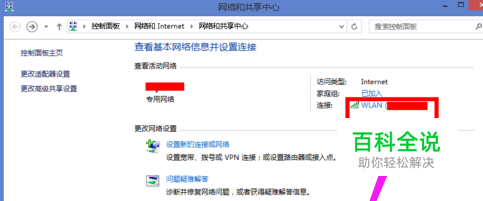 在网络共享中心选择已连接的wifi