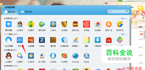 打开QQ主面板,点击它右下角的一个四方格的 —“应用管理器”,然后选择 —“微云”,如下图所示。