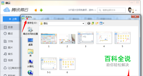 点击 —“微云”,然后选择 —“上传”后,会弹出一个—“打开”的窗口, 即可选择自己想要保存的文件,如下图所示。