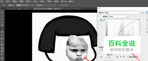 看一下拖过来的表情的大小,如果过大或者过小我们可以按快捷键CTRL+T,调整图片大小。(如果人物有颜色的话然后图像-->调整-->去色)小编这个不需要去色,所以直接调整色阶(调整色阶是为了突出五官)然后再调整一下曲线,图像-->调整-->曲线