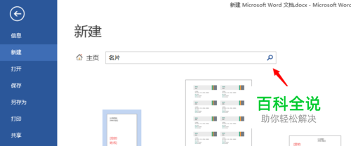 office2013,选择“文件”-“新建”命令,在线搜索名片模板。