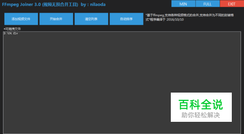 FFmpeg Joiner是视频合并软件,支持mkv、mp4、mov、flv、ts文件的无损合并,如果只有一个视频文件,就是无损转换了,支持mkv、mp4、mov、flv、ts文件相互无损转换。 使用方法是,把视频文件拖到输入框,然后点开始合并,然后在弹出的对话框中选择格式和文件名,点保存,就能在指定目录下找到转换的文件。