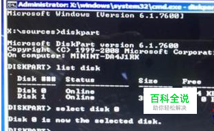 然后输入“select disk 0”,当前操作的磁盘选择disk 0;
