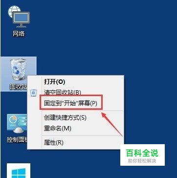 在弹出的开始屏幕上可以看到添加的回收站,右键回收站,选择固定到任务栏。