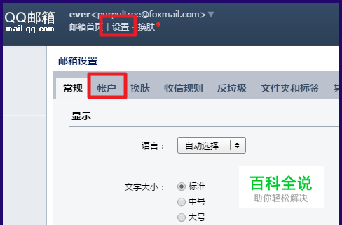 打开QQ邮箱,点击上方的【设置】-【账户】