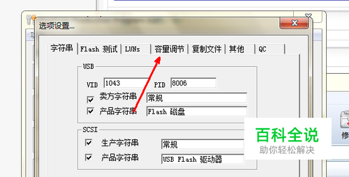 点击上图中的右下角的选项,然后来到软件的设置页。首先我们可以来看一下容量调节,当你的U盘容量显示不正确的时候,就可以用到这个功能。如图。
