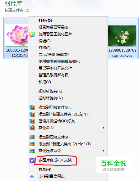 选择图片后,我们点击鼠标右键,这时弹出右键菜单,我们在右键菜单中选择“ 多图片合成PDF文档”选项,如下图所示。