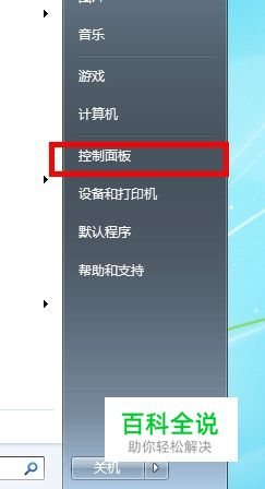 在开始菜单中选择控制面板菜单。