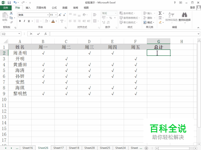 Excel通过COUNTA函数统计上班天数,人事考勤记录表内上班就打个对号√,没上班就是空白,统计出上班天数。