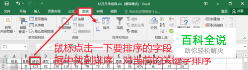 在对表格分类汇总以前,我们首先要对汇总的关键字进行排序,如图所示