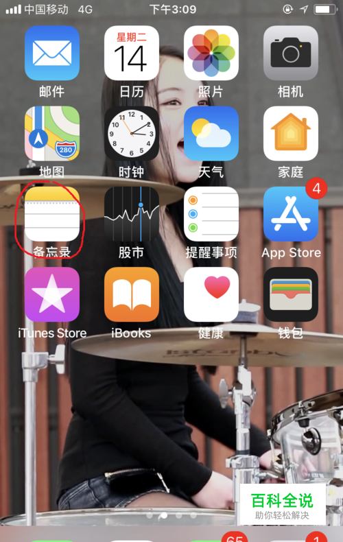 打开iPhone7桌面,点击“备忘录”。