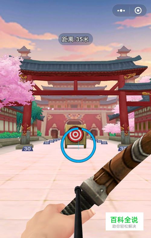 要注意风速: 不要以为瞄准范围跟靶子一模一样的我们射过去就是中间哦,这个游戏做的很真实,真实的箭射过去,是会被风速影响的,它也是,所以我们要稍微靠上面一点。