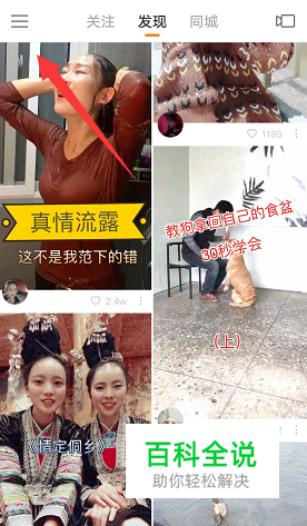 打开快手APP,点击左上角三条横线按钮。