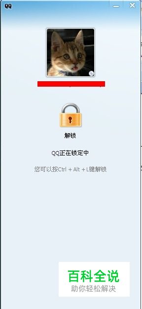 这样别人就不能动你的QQ了,而且提示的这个按Ctrl+Alt+L解锁(也是锁定的快捷键)是这样的: