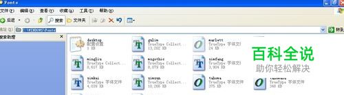 第二步,检查有没有C:\WINDOWS\Fonts\ desktop.ini文件,desktop.ini直接在fonts文件夹因为隐藏可能查不到,还的设置显示查看所有隐藏文件,我介绍个简单的方法:直接在我的电脑地址栏输入文件路径 C:\WINDOWS\Fonts\desktop.ini弹出文件来了,就说明存在,没有就是不存在。见下图。