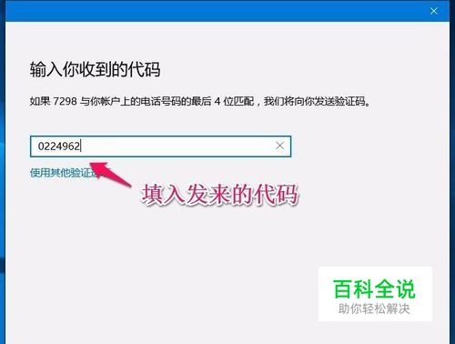 这时微软的管理团队会给我们发来验证代码(代码发送到我们建立微软帐户时绑定的手机上),我们把代码填入 输入你收到的代码窗口的栏里,再点击:下一步;