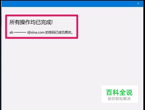 如果出现:所有操作均已完成 - ab********@sina.com的密码已成功更改。则我们的Windows10系统已经由本地用户登录改用了Micrososft帐户登录。