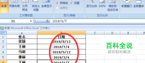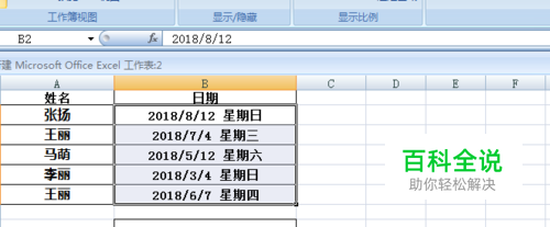 打开一个excel表格,如下图所示,数据当中有日期,我们想要知道这些日期中对应的星期是什么。